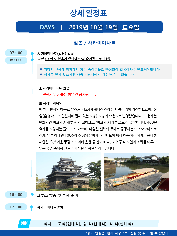 마감~ [ 속초 승선 / 부산 하선 ] 20191015 코스타 세레나호 한국 / 일본 / 러시아 5박6일
