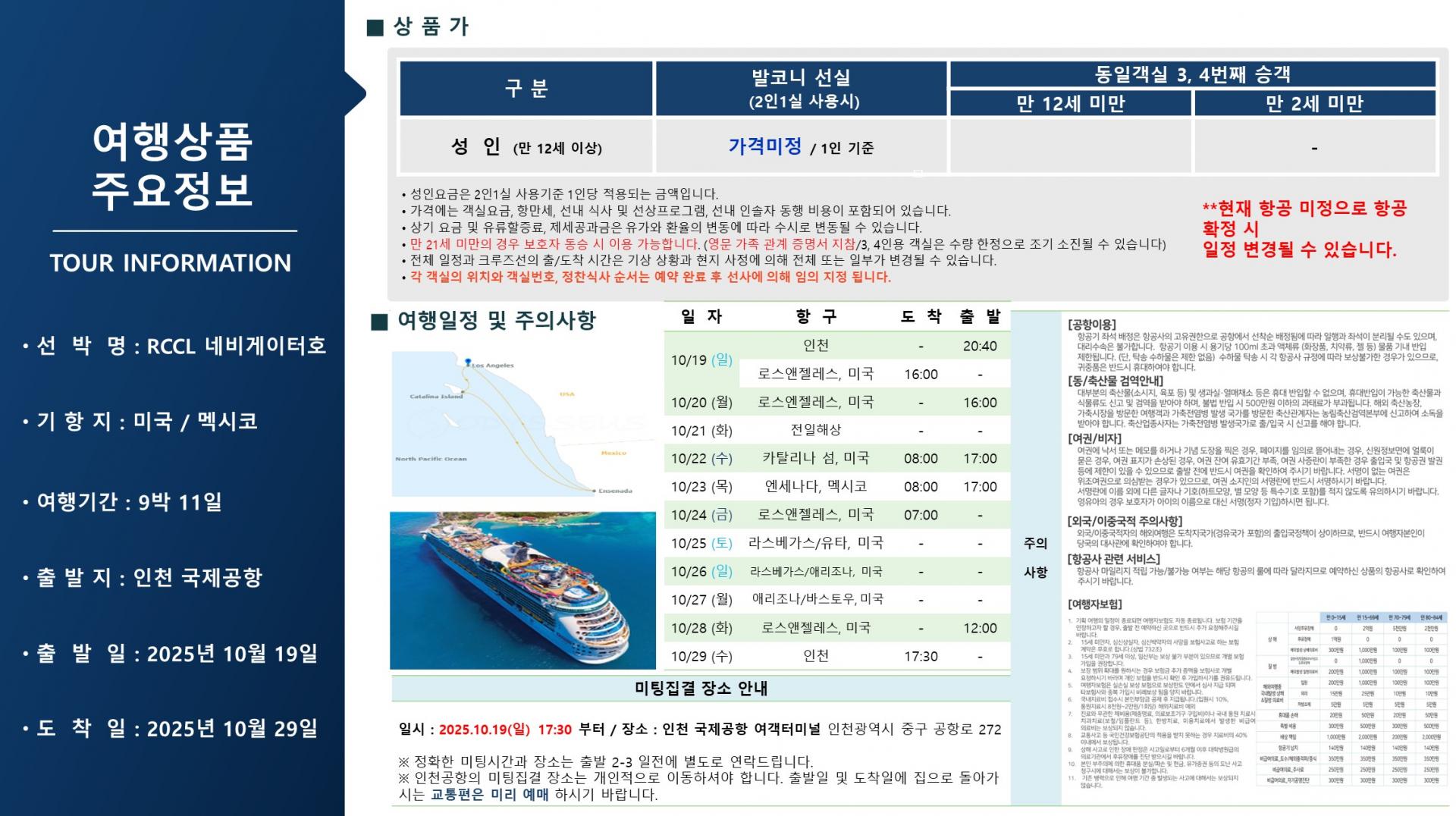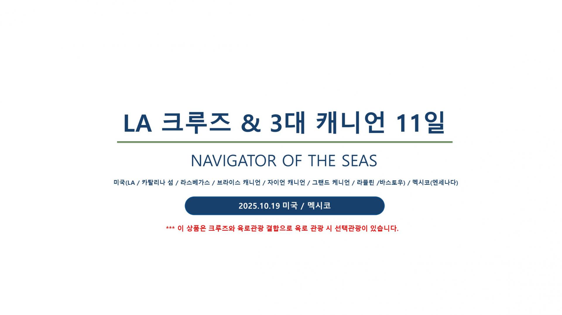 크루즈 전문 인솔자 동행[발코니] 20251019 네비게이터호 LA/멕시코/라스베가스/그랜드캐니언 8박 11일