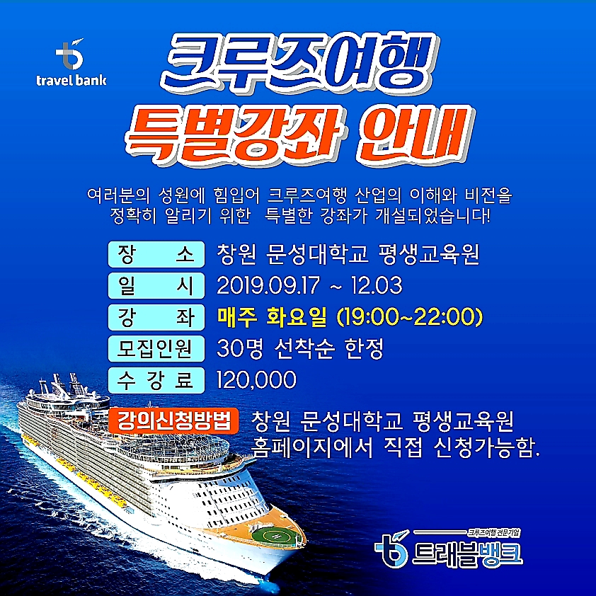 트래블뱅크 주관 / 크루즈여행 특별강좌 안내