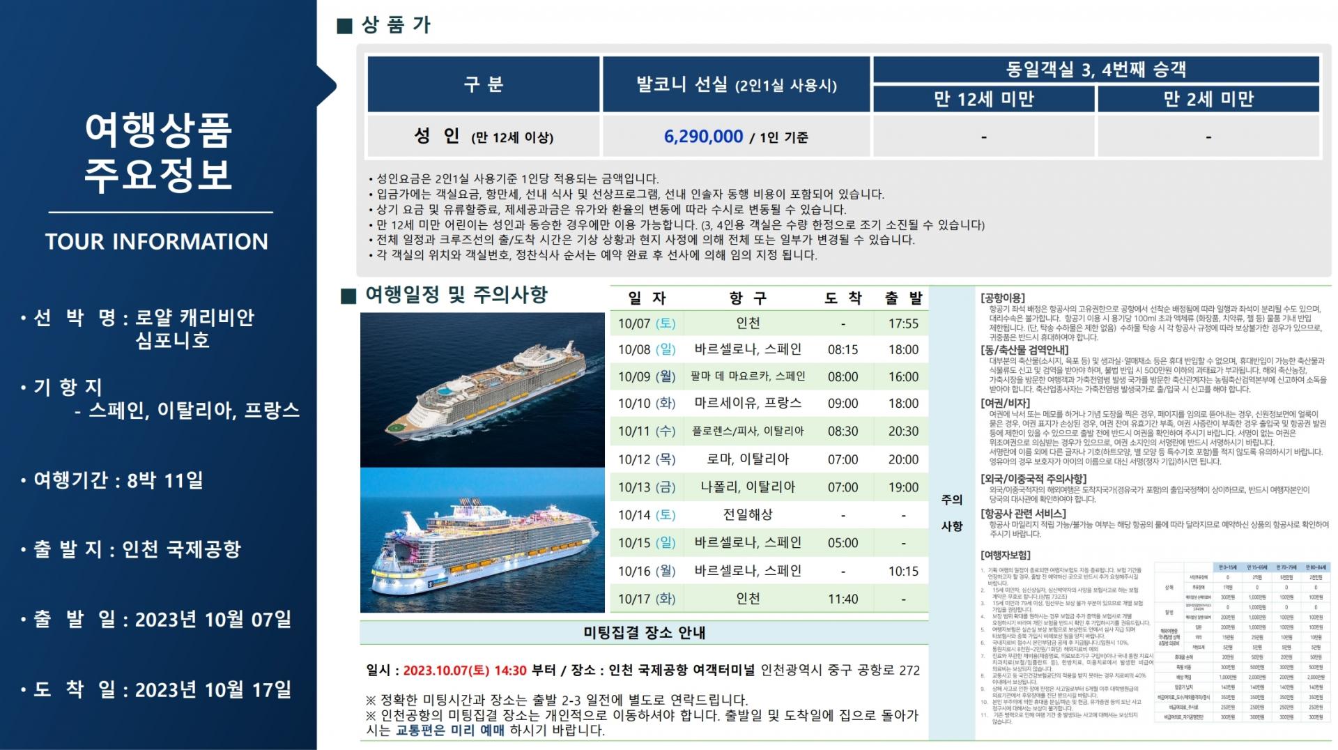 크루즈 전문 인솔자 동행[발코니] 20231007 심포니호 스페인/이탈리아/프랑스 8박 11일
