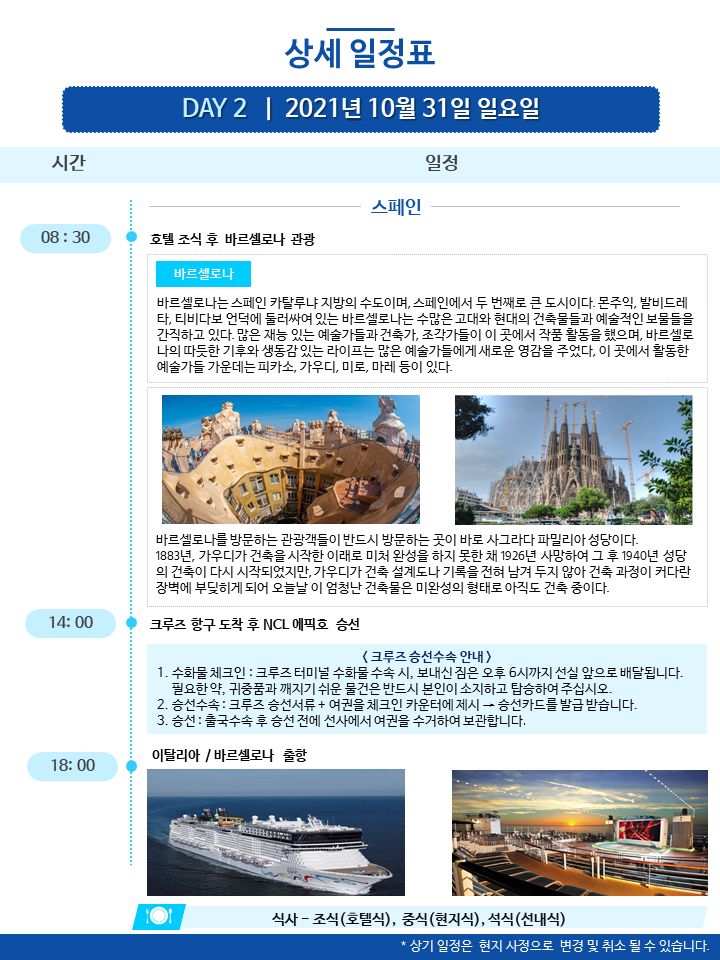 20211030 NCL에픽호 스페인/이탈리아/프랑스 8박 10일