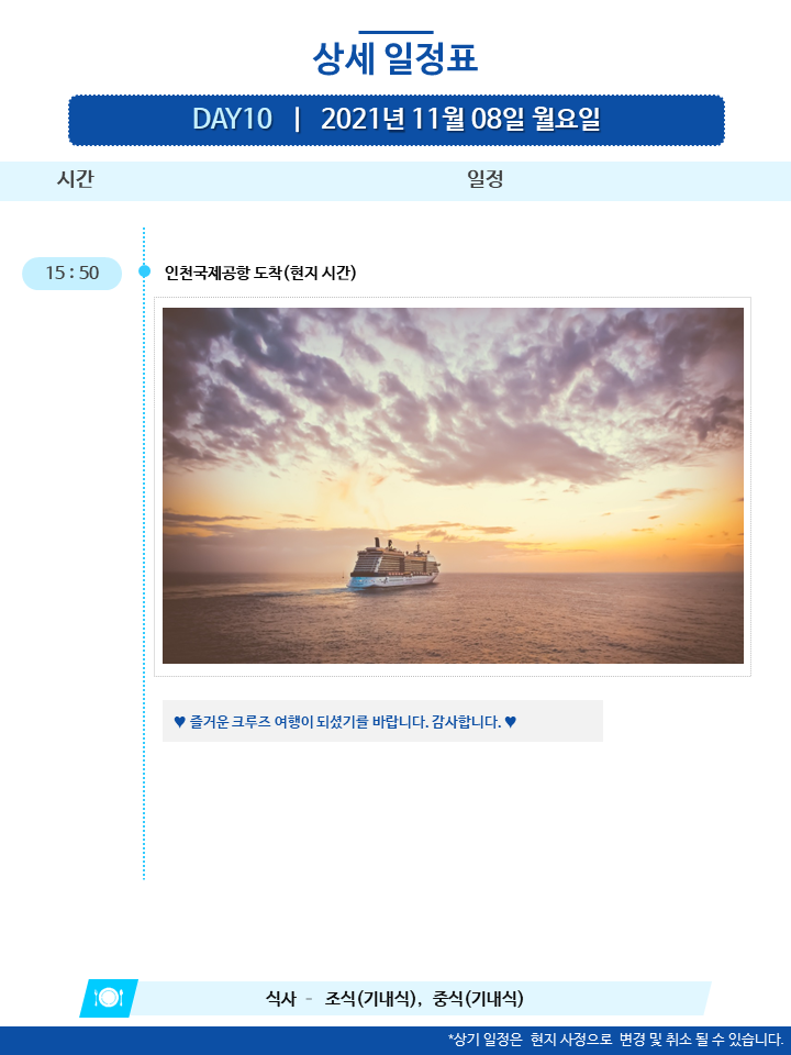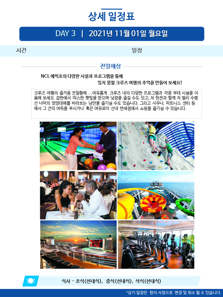 [레크레이션은 현지사정에 의하여 변경 또는 취소 될 수 있습니다.]