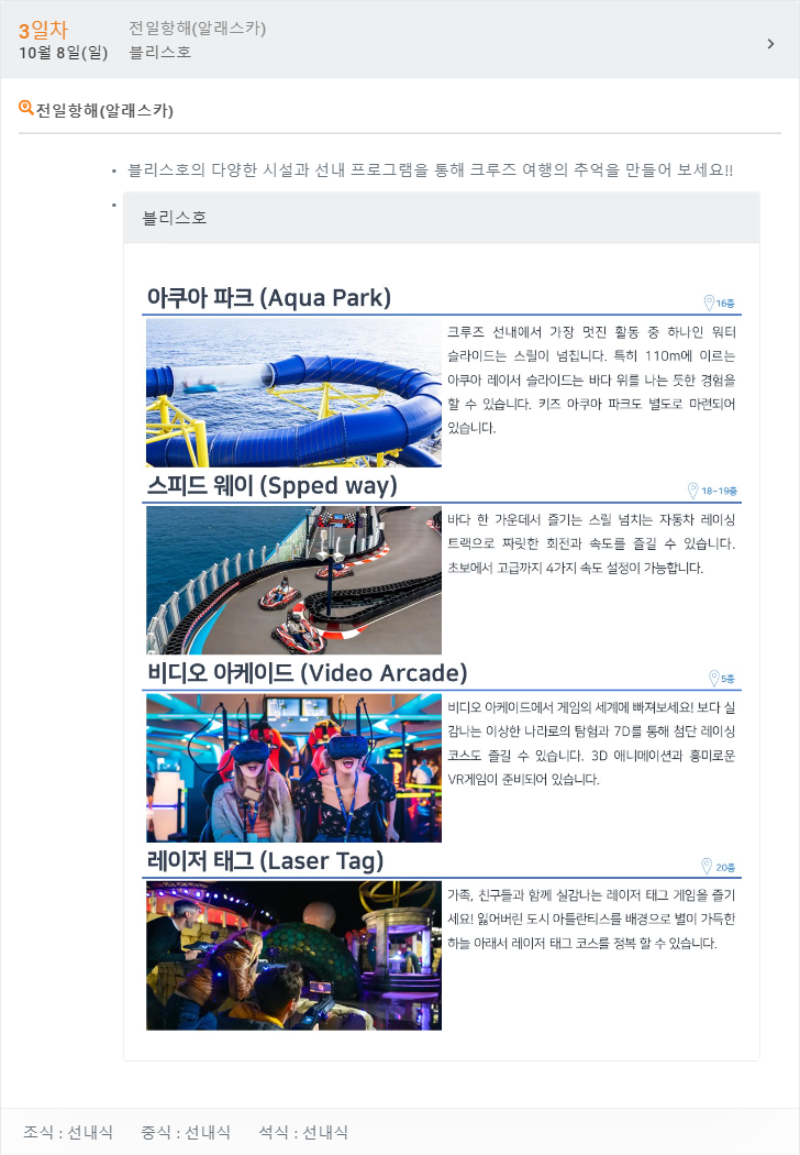 [레크레이션은 현지사정에 의하여 변경 또는 취소 될 수 있습니다.]
